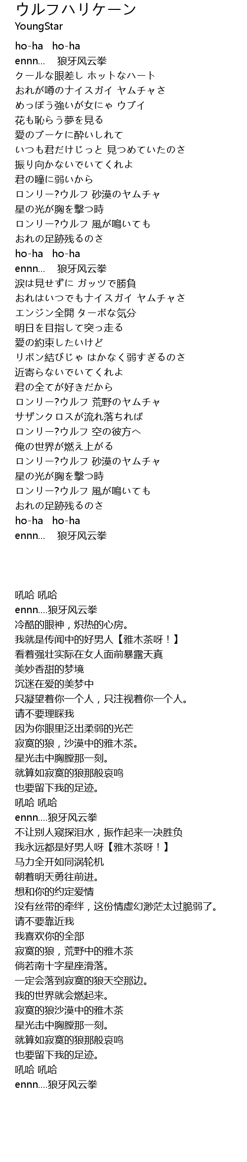 | [03:18.837] | ロンリー?ウルフ 風が鳴いても |