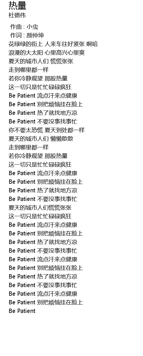 | [01:16.03] | Be Patient 热了就找地方凉 |