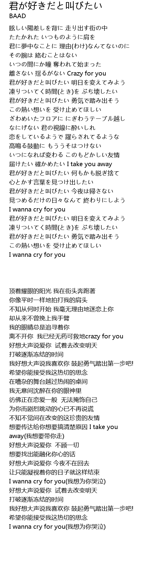 | 歌曲 | 君が好きだと叫びたい |