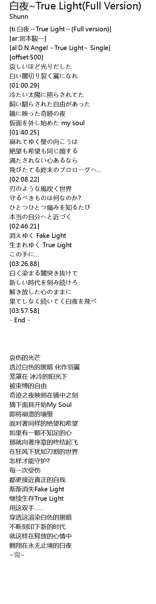 | [ti:白夜~True Light~(Full version)] | |
