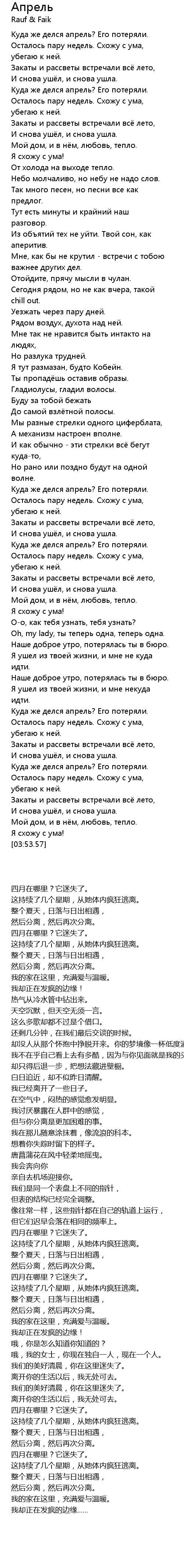 | [03:11.17] | Куда же делся апрель? Его потеряли. |