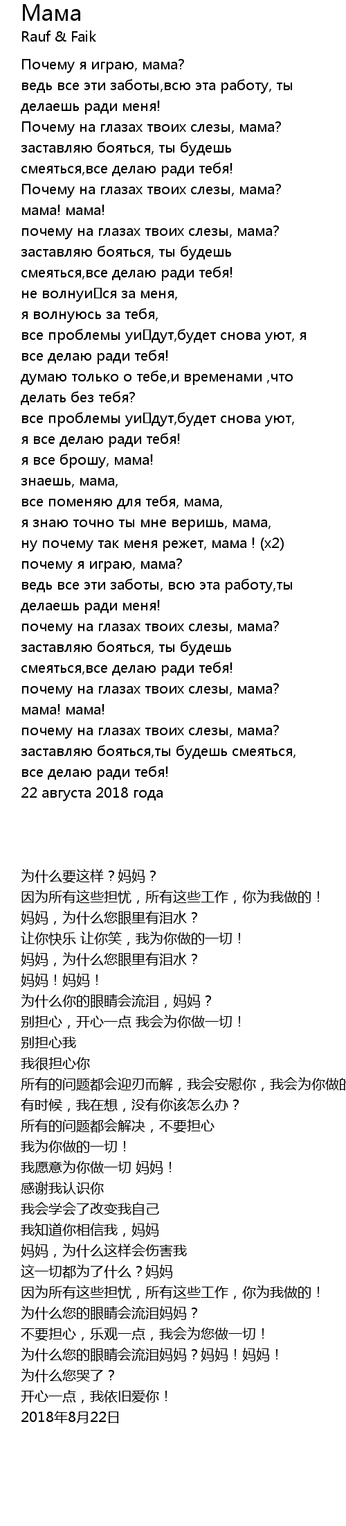 | [02:31.765] | почему на глазах твоих слезы, мама? мама! мама! |