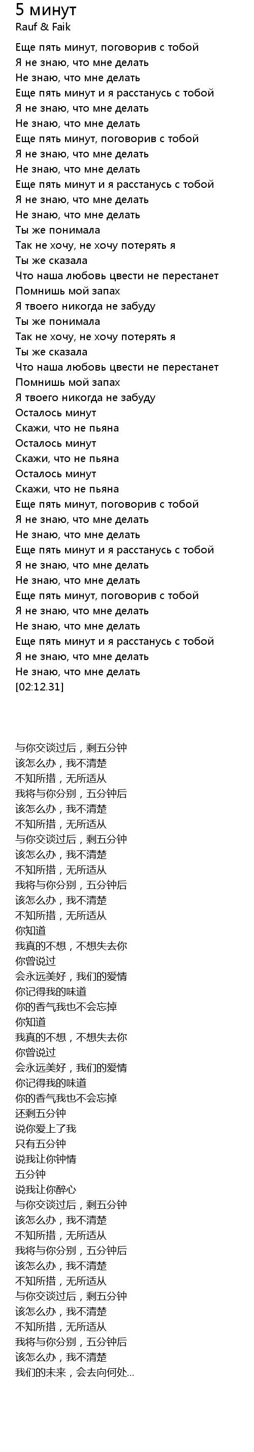 | 歌曲 | 5 минут |