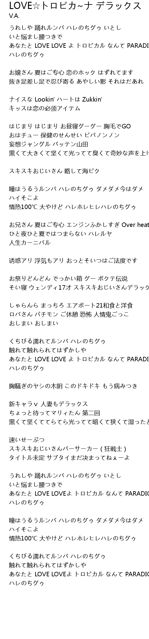 | [02:47] | あなたと LOVE LOVEよ トロピカル なんて PARADICE ハレのちグゥ |