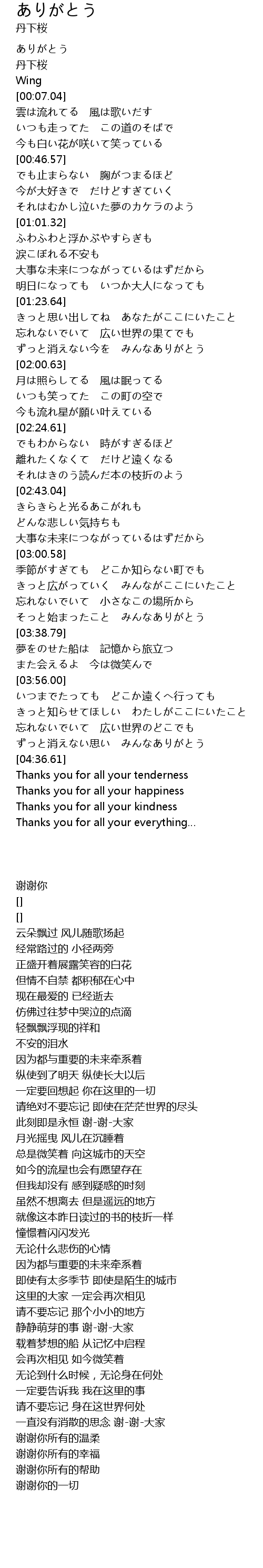 | [04:24.77] | ずっと消えない思い みんなありがとう |