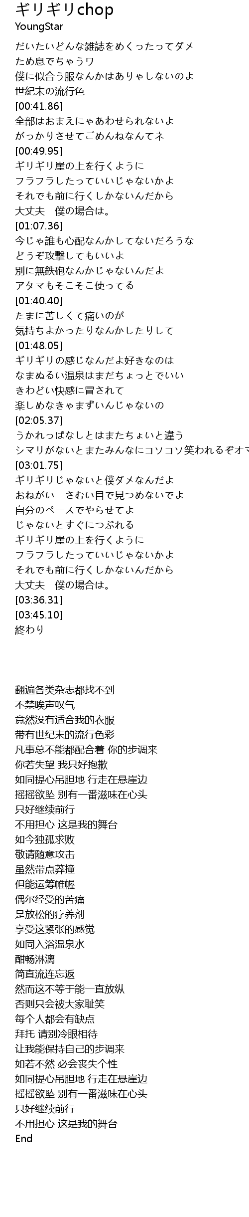 | [03:18.67] | ギリギリ崖の上を行くように |