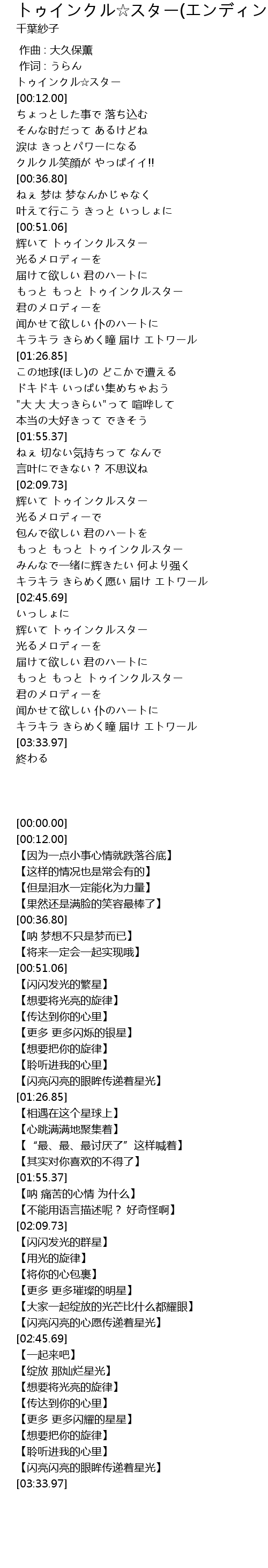 - トゥインクル☆スター(エンディングテーマ)