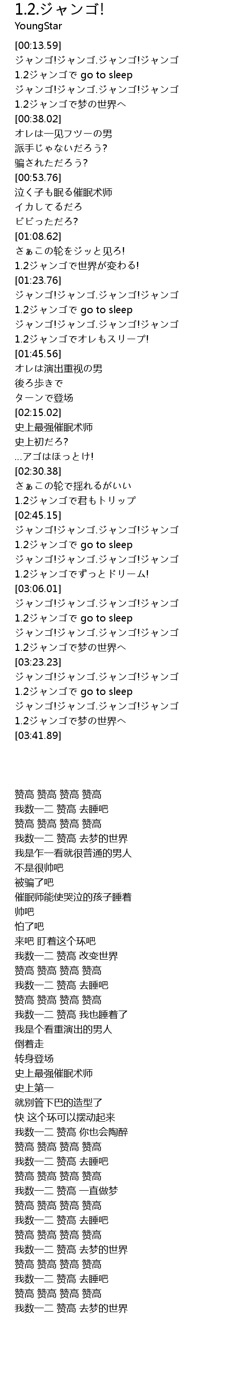 | [02:53.68] | ジャンゴ!ジャンゴ.ジャンゴ!ジャンゴ |