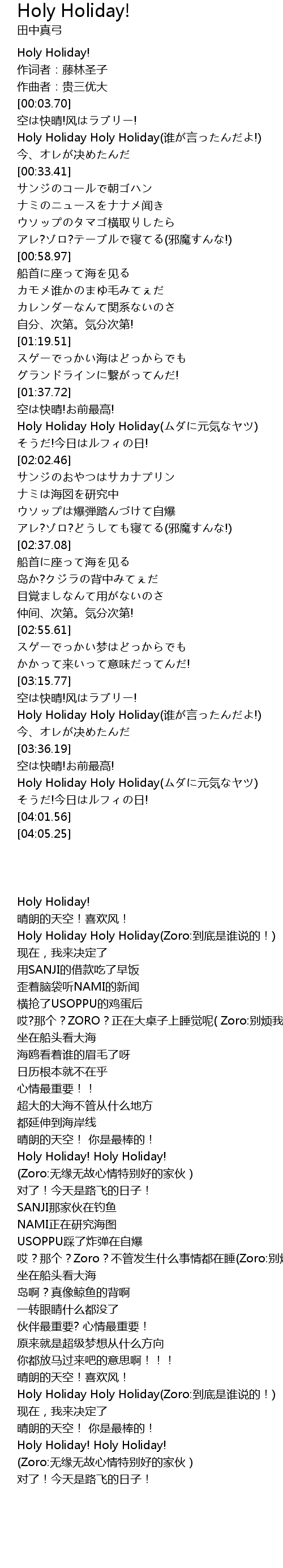 | [03:22.52] | Holy Holiday Holy Holiday(Zoro:到底是谁说的!) |