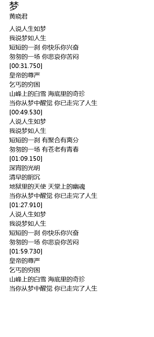 | [02:12.210] | 当你从梦中醒觉 你已走完了人生 |