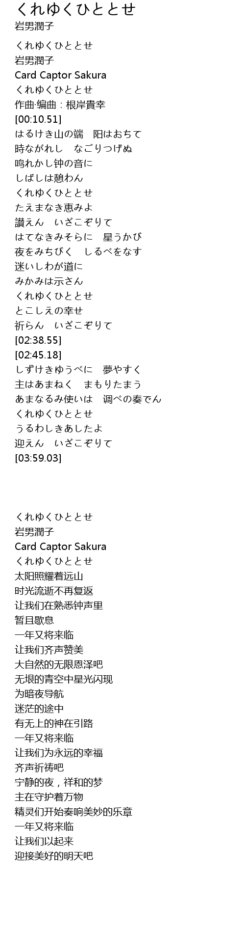 | [00:30.95] | 時ながれし なごりつげぬ |