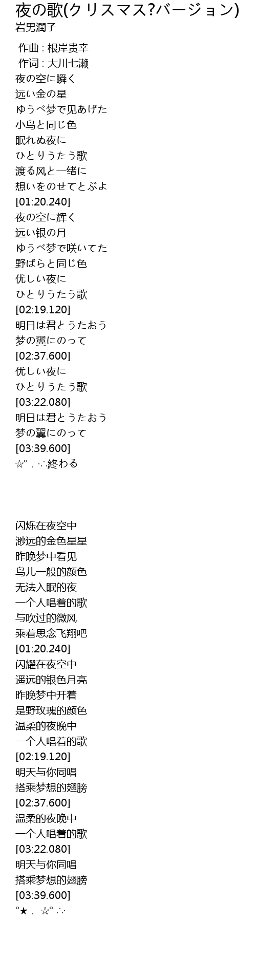 | [01:35.390] | 夜の空に辉く |