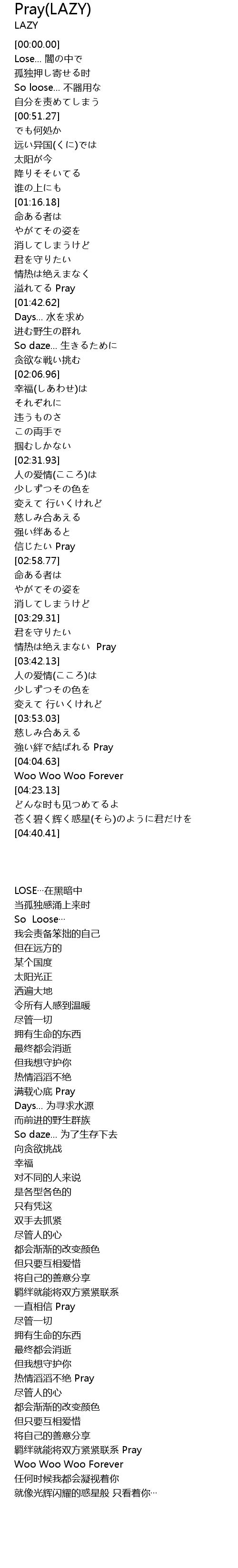| 歌曲 | Pray(LAZY) |