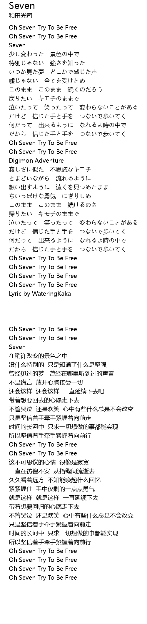 | [00:00.00] | Oh Seven Try To Be Free |
