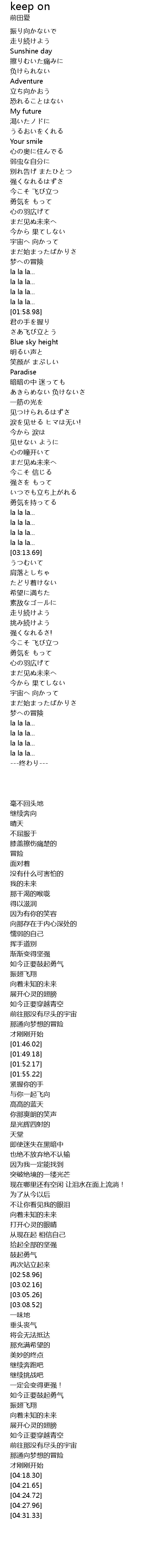 | [04:02.21] | まだ见ぬ未来へ |