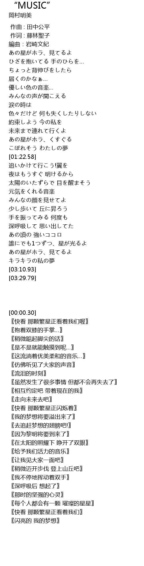 | [00:03.01] | あの星がホラ、見てるよ |