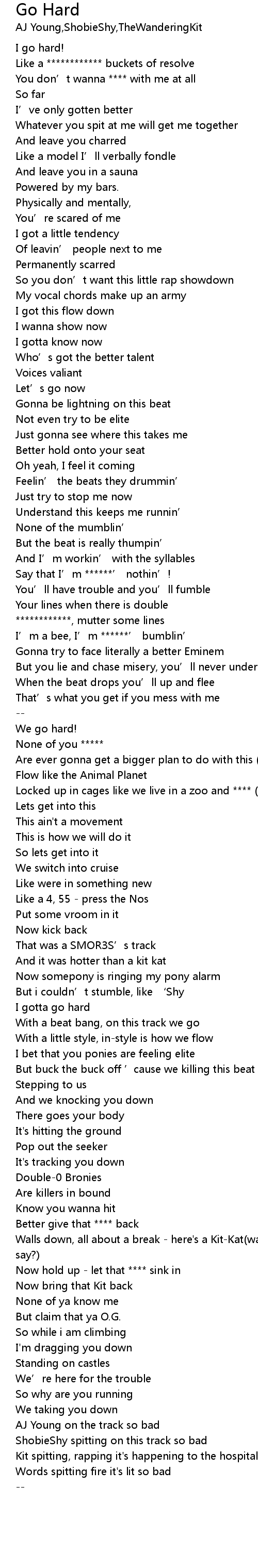 | [00:24.89] | I go hard! |