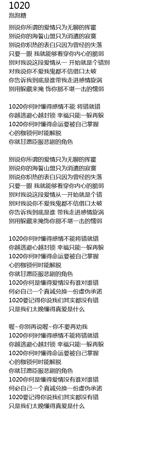 | 1020你何是懂得爱情没有谁对谁错 | |