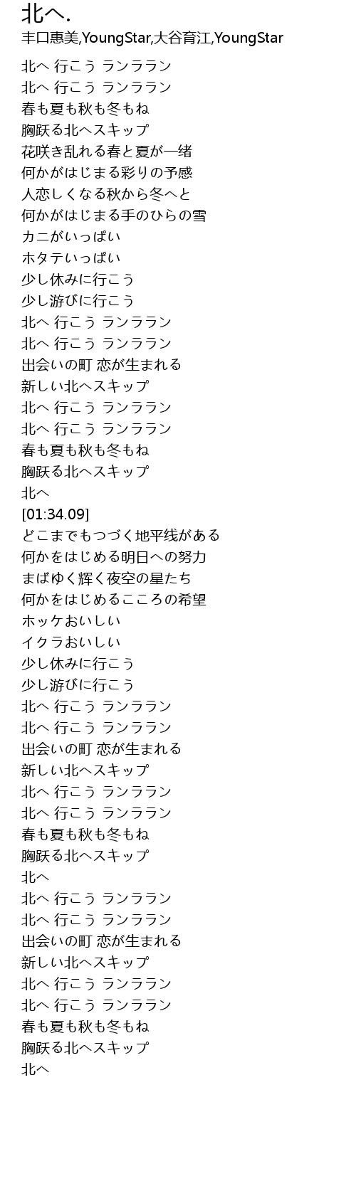 | [00:59.72] | 北へ 行こう ランララン |