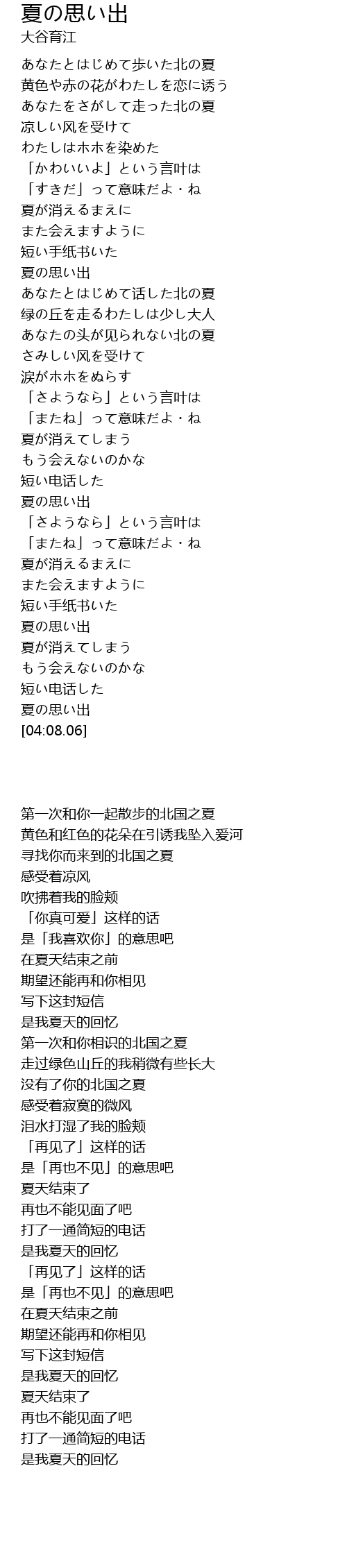 | [01:43.35] | あなたとはじめて话した北の夏 |
