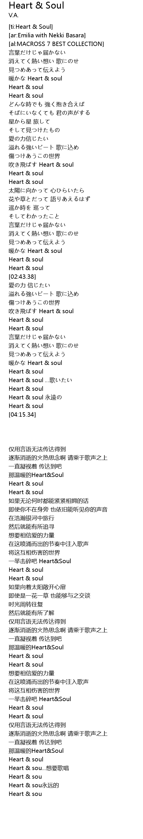| [04:07.15] | Heart & sou永远的 |