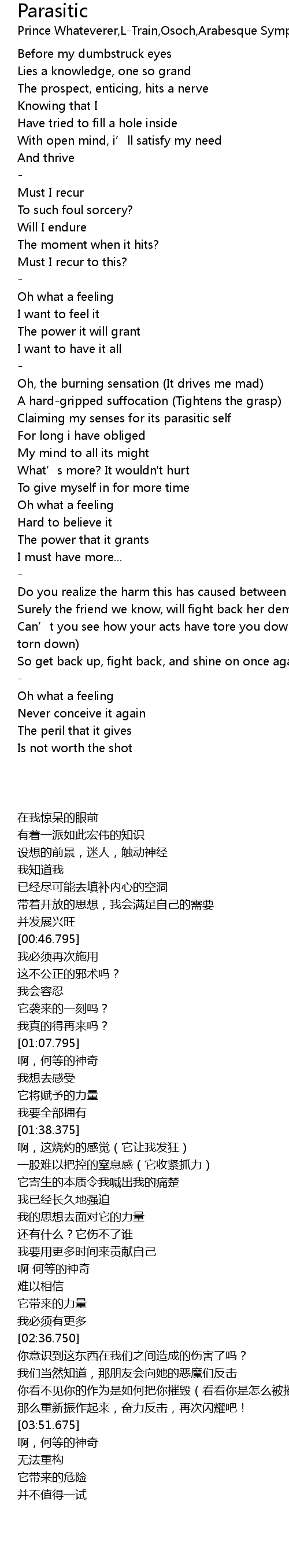 | [01:56.949] | 它寄生的本质令我喊出我的痛楚 |