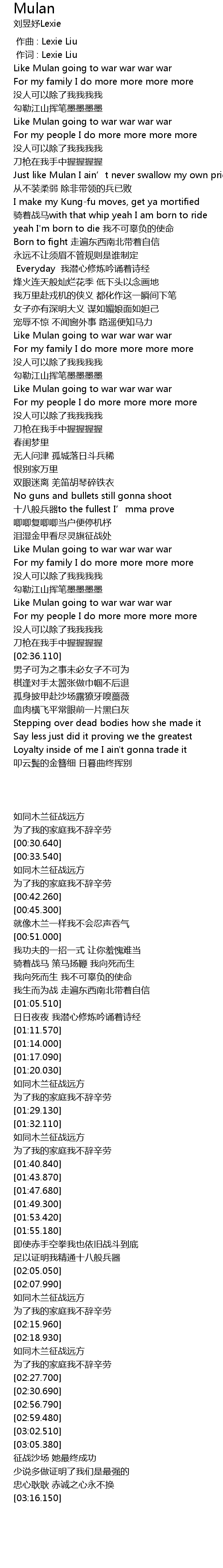 | [00:48.340] | 就像木兰一样我不会忍声吞气 |