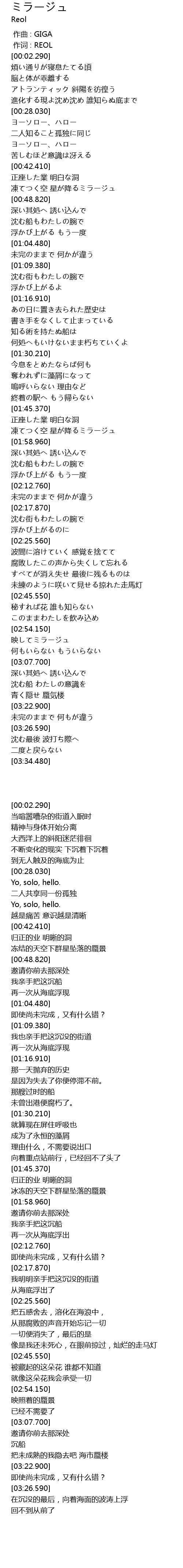 | [02:54.160] | 映してミラージュ |