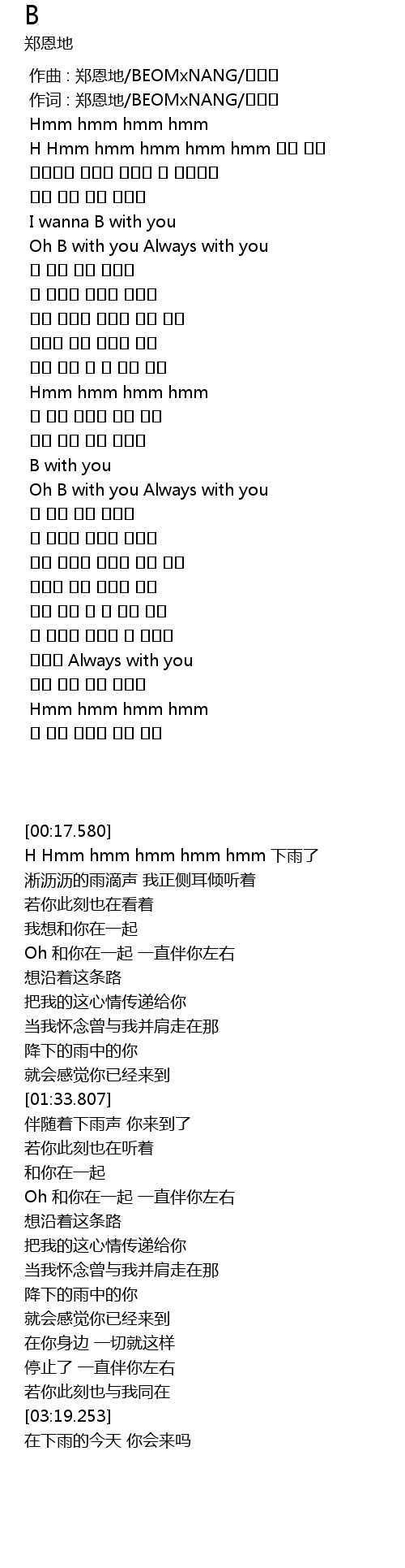 | [00:01.000] | zuò cí : zhèng ēn dì BEOMxNANG |