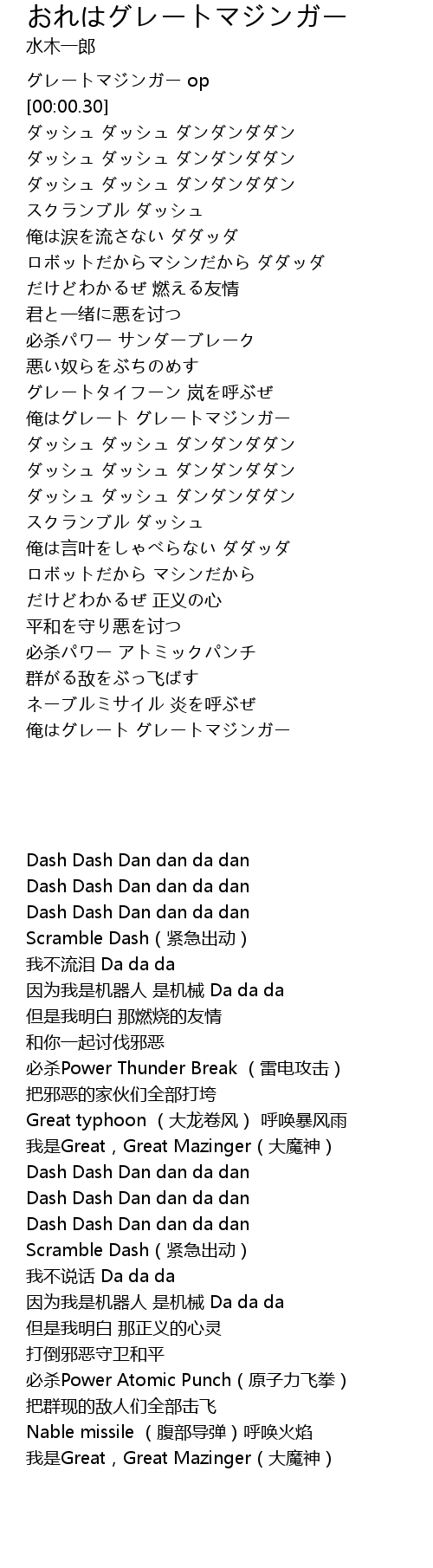 | [00:51.11] | 俺はグレート グレートマジンガー |