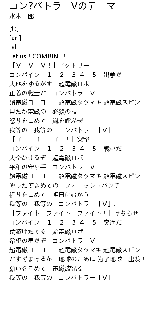 | [02:13.95] | 希望の星だぞ コンバトラーV |