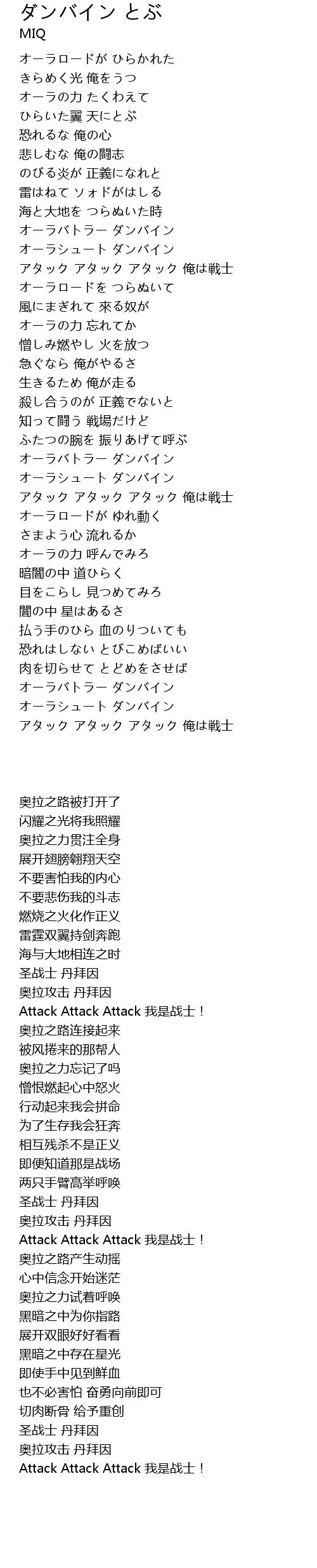 | [01:17.02] | Attack Attack Attack 我是战士! |
