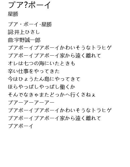 [00:05.610] プアボーイプアボーイかわいそうなトラヒゲ