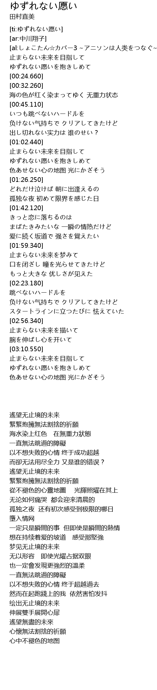 | [03:17.910] | ゆずれない愿いを抱きしめて |