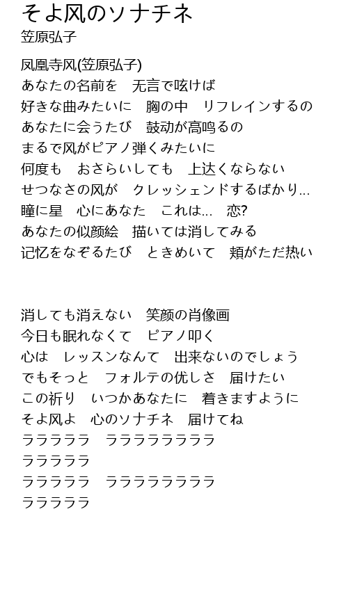 | そよ风よ 心のソナチネ 届けてね | |
