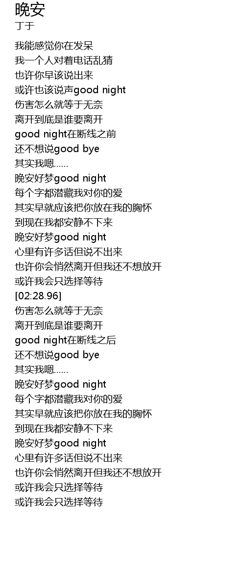 | [01:46.59] | 晚安好梦good night |