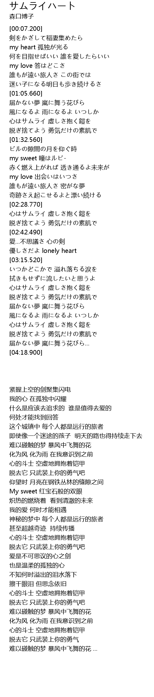 | [03:58.520] | 心はサムライ 虚しさ抱く鎧を |