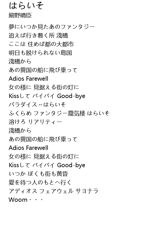 | 歌曲 | はらいそ |