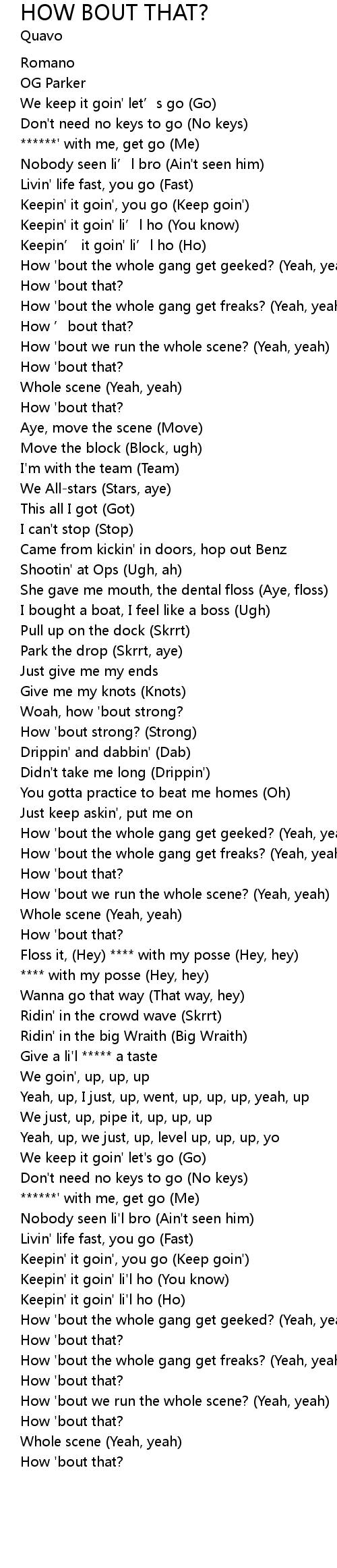 | [01:22.43] | How 'bout the whole gang get freaks? (Yeah, yeah) |