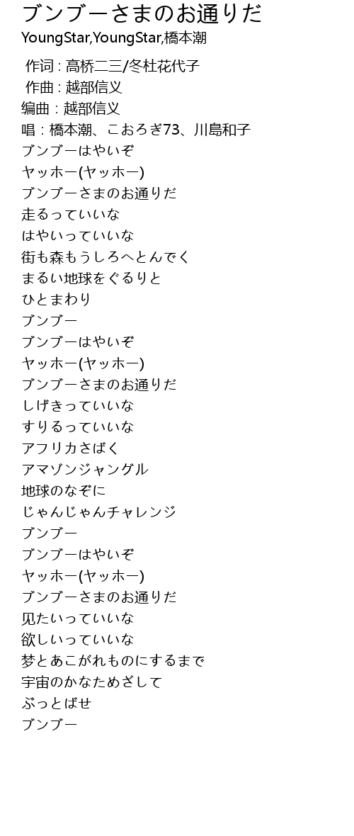 | [01:11.78] | ブンブーさまのお通りだ |