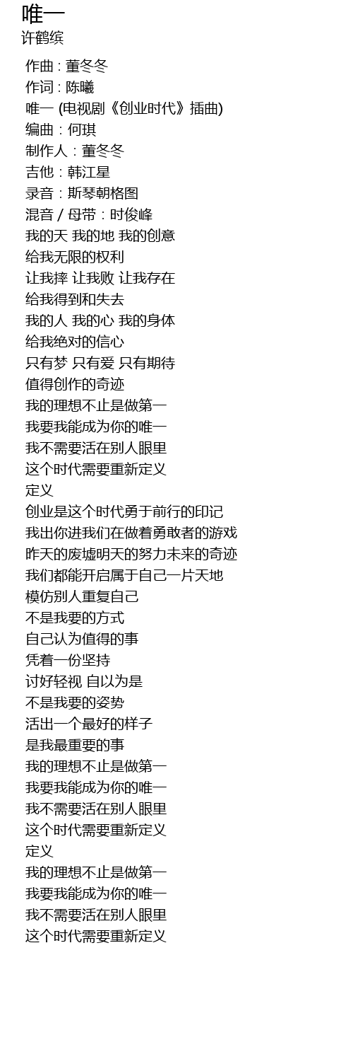 | [00:00.00] | 唯一 (电视剧《创业时代》插曲) |