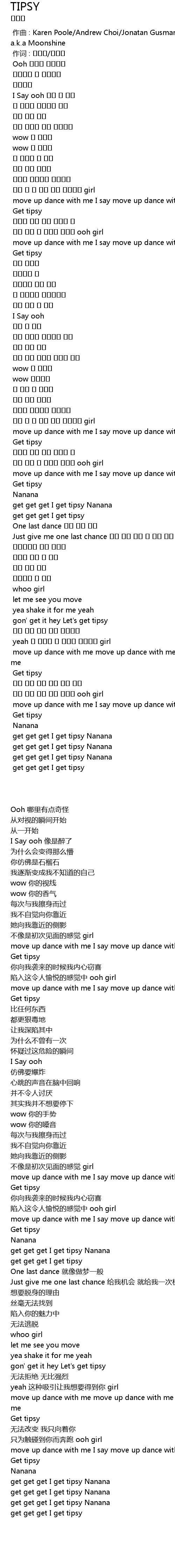 | [02:29.705] | gon' get it hey Let' s get tipsy |