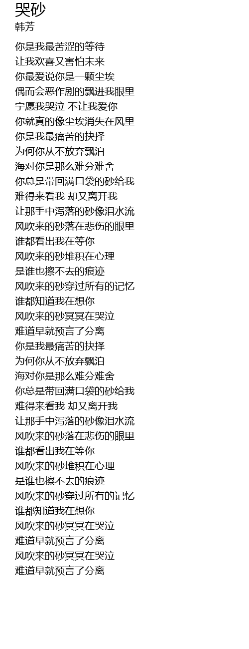 | 让那手中泻落的砂像泪水流 | |
