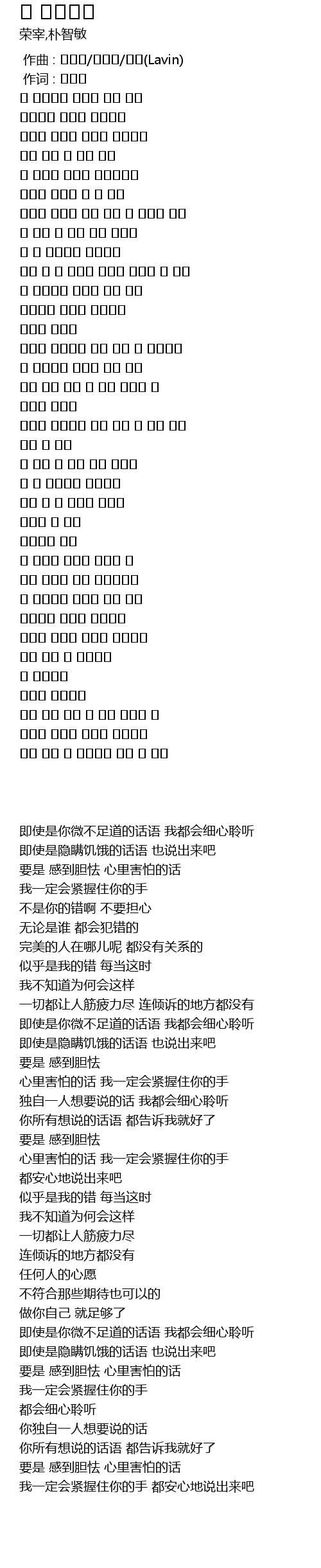 | [00:21.90] | 네 잘못이 아니야 걱정하지마 |
