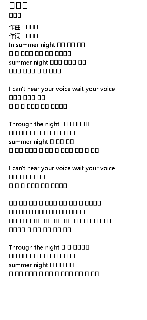 긴 긴 그 열대야 너만 기다리네 |