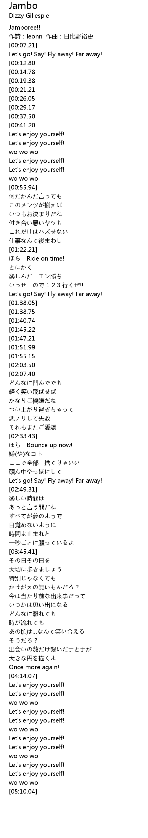 | [02:50.01][00:12.80] | Oh! Jamboree!! |
