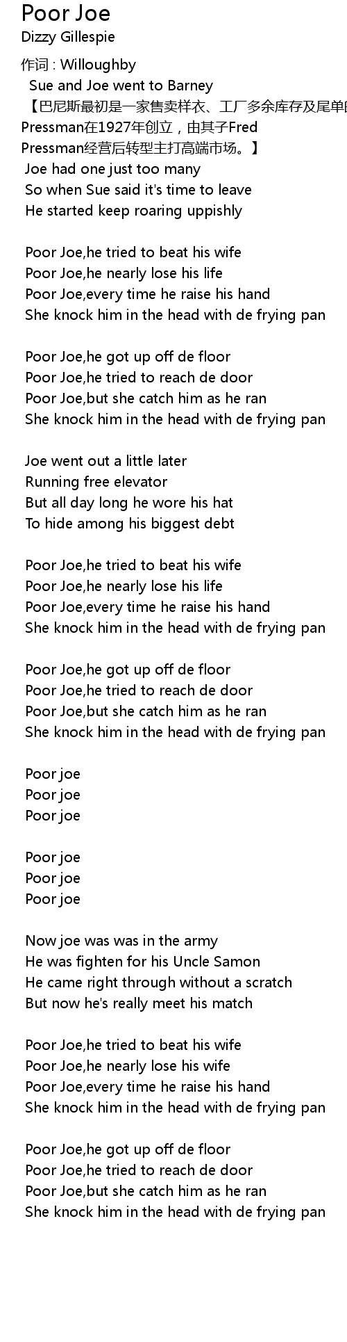 | 歌曲 | Poor Joe |