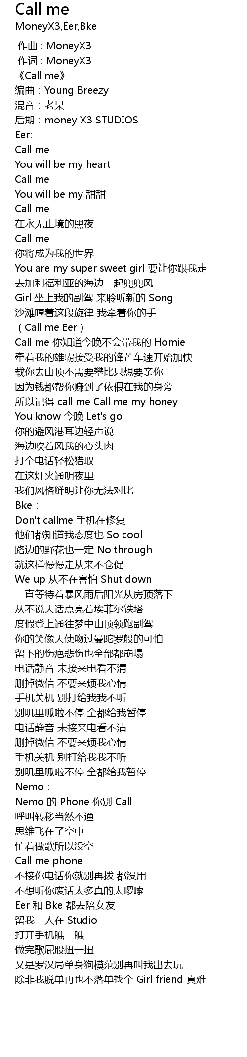 | [00:44.693] | Call me 你知道今晚不会带我的 Homie |