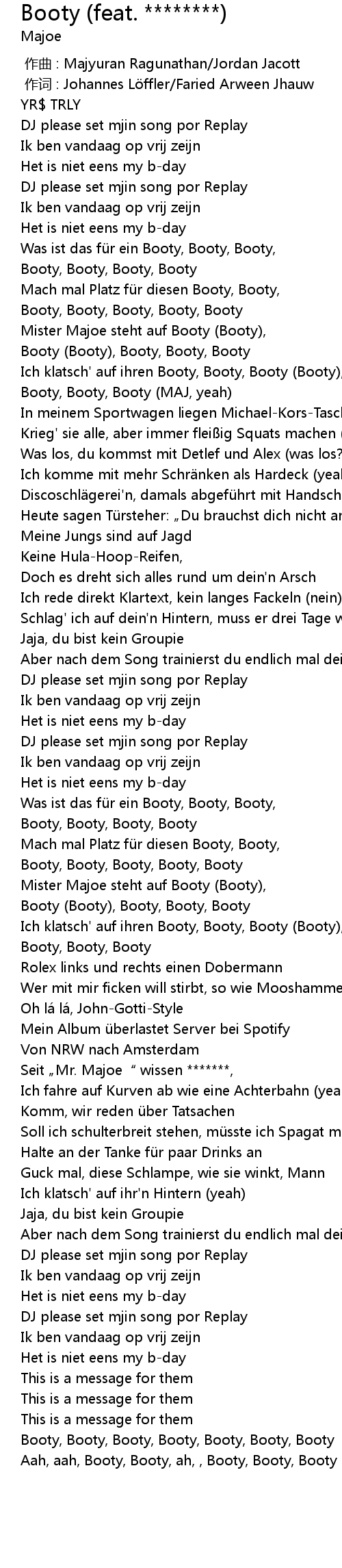 | [00:44.96] | Booty, Booty, Booty (MAJ, yeah) |