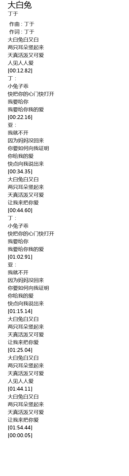 | [01:44.80] | 大白兔白又白 |
